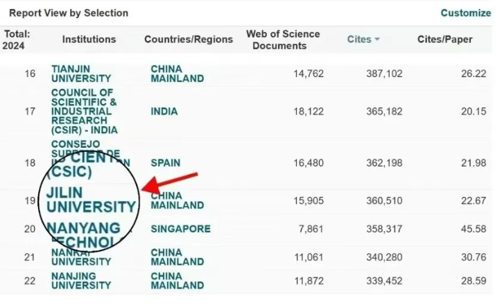 JLU’s chemistry discipline ranks among top 1‱ globally in ESI