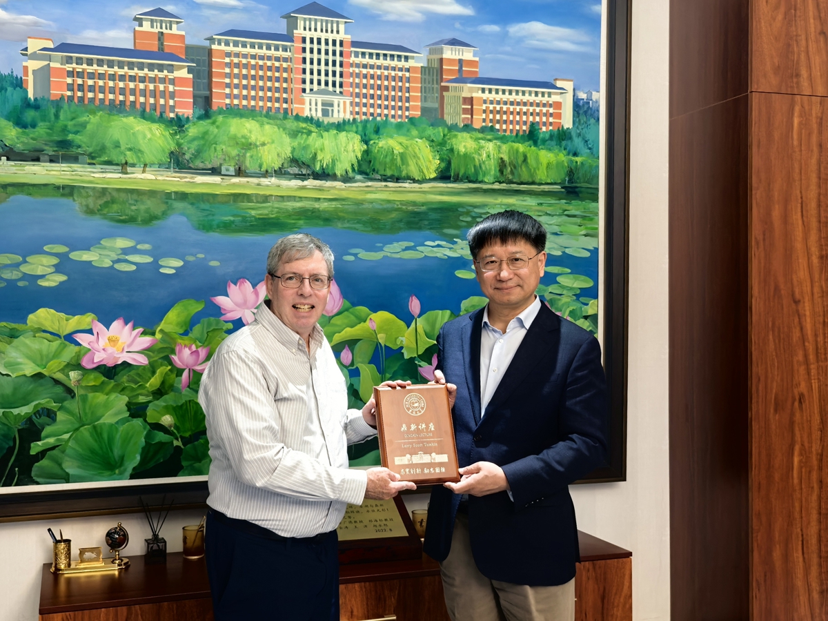 Prof. Larry Temkin, distinguished ethicist from Rutgers, The State University of New Jersey, gave a lecture titled “Being Good in a World of Need” for Jilin University’s (JLU) Dingxin Lecture Series on May 22. President ZHANG Xi presented him with a commemorative plaque.