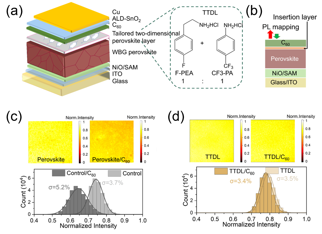 The team introduced a mixture of 4-fluorophenethylamine (F-PEA) and 4-trifluoromethyl-phenylammonium (CF3-PA) to form a tailored 2D perovskite layer, effectively resolving issues of ETL interface non-uniformity and poor contact quality.