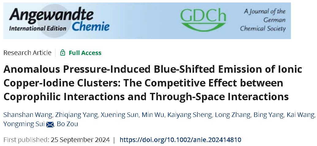 The research results were published in Angewandte Chemie International Edition, one of the prime chemistry journals in the world, under the title Anomalous Pressure-Induced Blue-Shifted Emission of Ionic Copper-Iodine Clusters: The Competitive Effect between Coprophilic Interactions and Through-Space Interactions.
