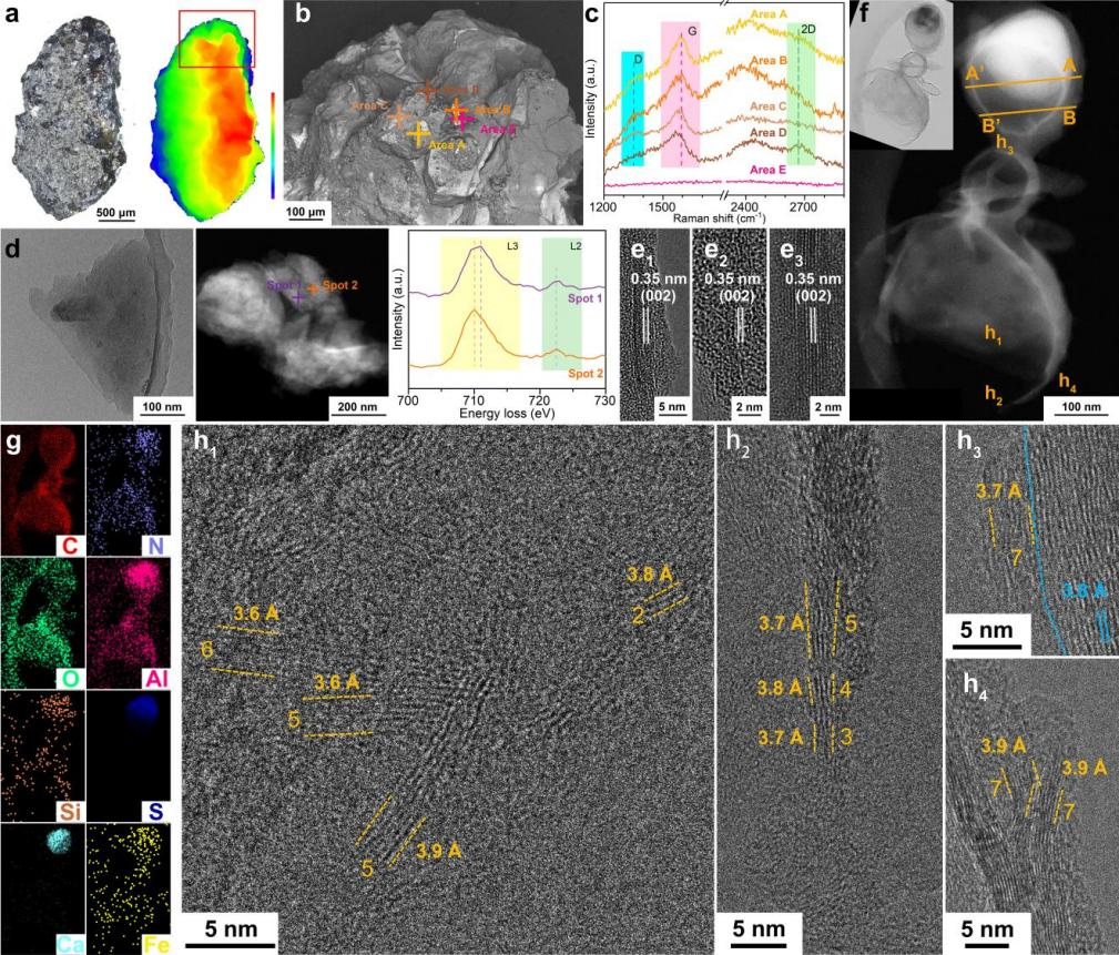 What’s more, the presence of iron compounds in the carbon-rich regions is understood to suggest a close relationship with the formation of graphene.