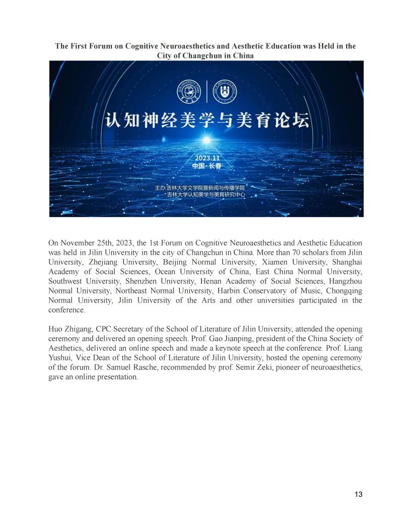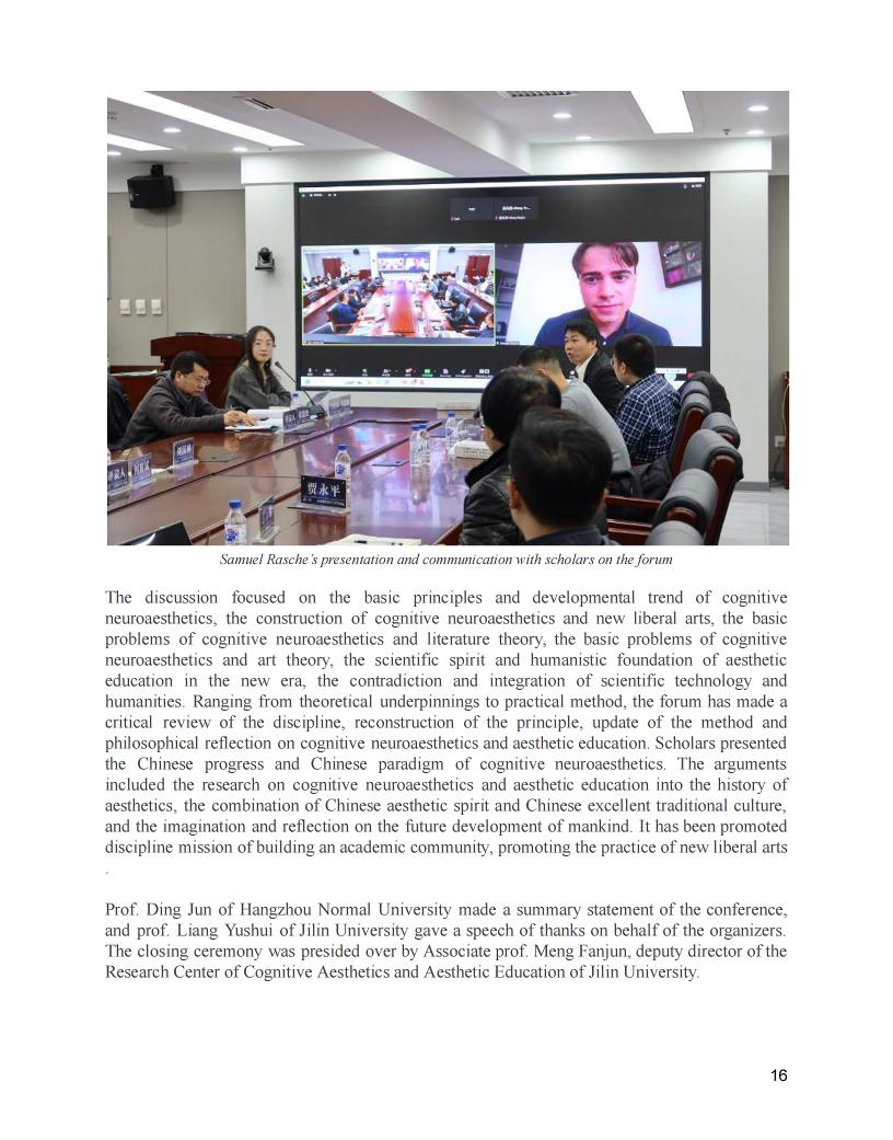 The International Association for Aesthetics (IAA)’s Newsletter recently featured an extensive report on the First Forum on Cognitive Neuroaesthetics and Aesthetic Education, co-organized by the College of Humanities, the College of Journalism and Communication and the Office of Humanities and Social Sciences Research at Jilin University (JLU).